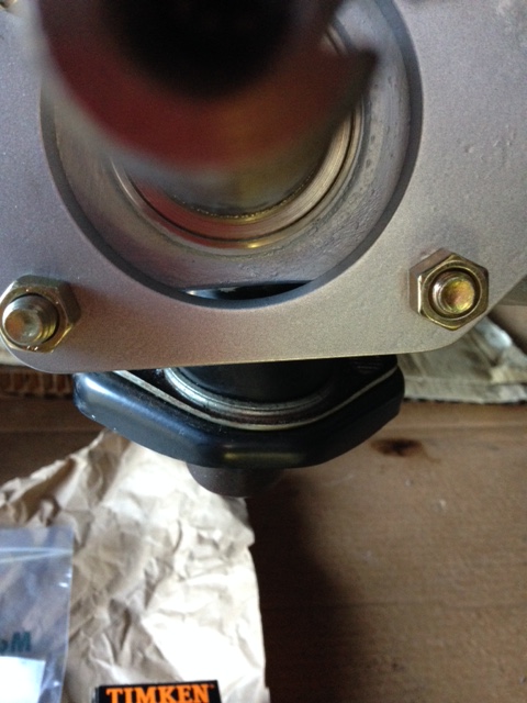 So why is this important to know? Based on a number of posts I read in various forums, if you try and press these swedged studs out of the hub, in order to separate the drum from the hub, the expanded OD of the shoulder will over-expand the knurled hole in the hub as it passes through the hub flange. If you reinstall an OEM stud back into this enlarged hole, there's the potential it will spin in the hole when it comes time to torque the lugs nuts as there won't be enough material left for the new knurls to get a good 'bite'. I can't confirm this, but given the number of posts on Jeep and Model T forums on this issue, I chose to err on the safe side and remove the drum from the hub per Steve's instructions. And that is to simply place a plate across the top of the outer bearing retainer and press the hub from the drum, rather than the studs from the hub.